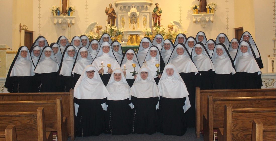 The following photos are from the Mater Dei Sisters in Persia, Iowa. On Easter Monday, April 18, Sr. Margaret Mary (the former Anna Bohman of our parish), Sr. Stephanie Marie, Sr. Evangeline Marie, and Sr. Mary Imelda took their first-year vows. On Easter Tuesday, April 19, Sr. Mary Martina, Sr. Noël Marie, and Sr. Maria Antonia took their final vows. The Congregation of the Mother of God now has a total of 36 members, including 4 novices. Deo gratias!